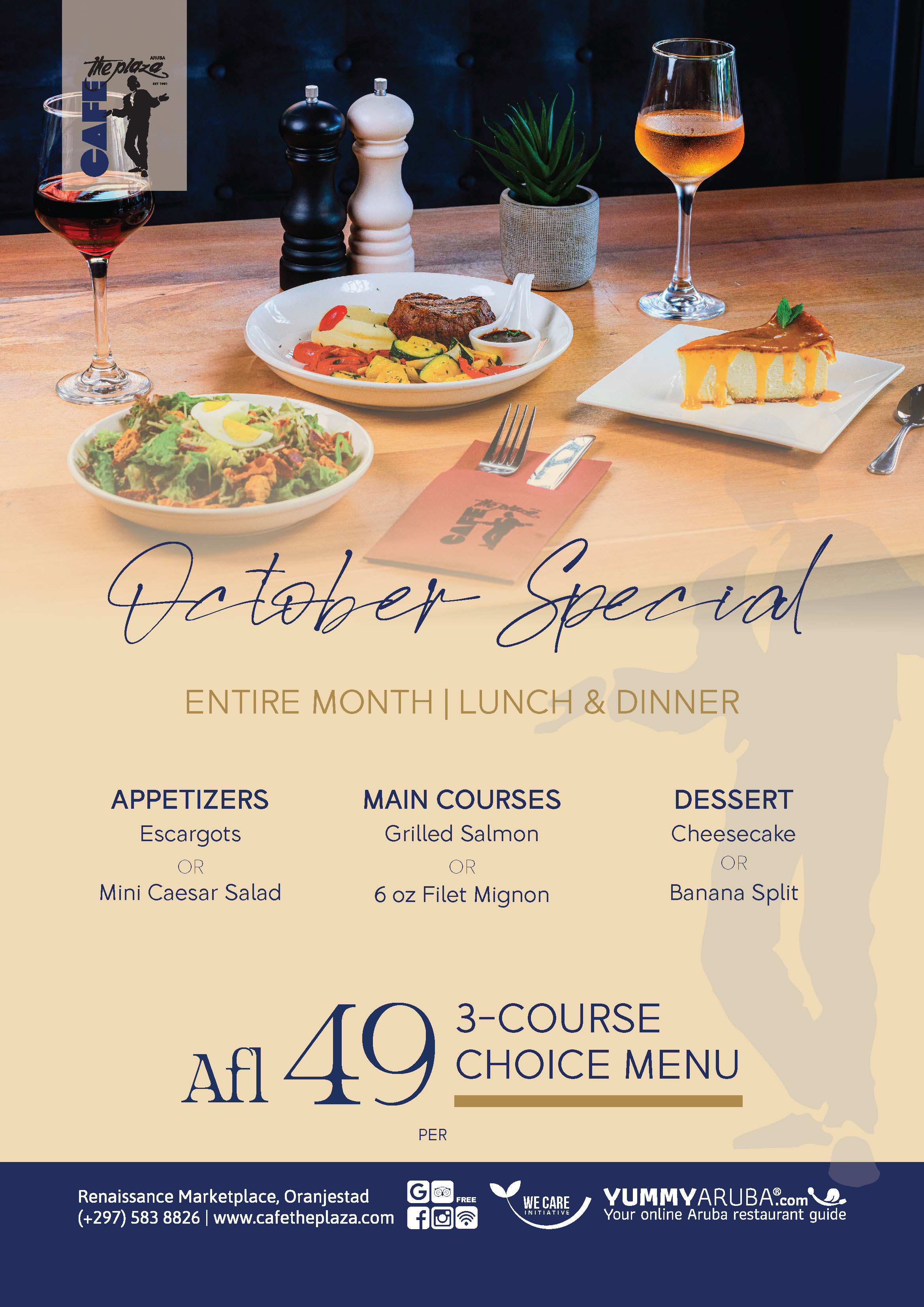 Café the Plaza is bringing a flavorful dining offer to the table this October. For the entire month, guests can enjoy a 3-course lunch or dinner for just 49 Florins per person. It’s the perfect way to enjoy a full meal at an unbeatable price, with a menu that gives you the chance to choose from carefully prepared dishes.